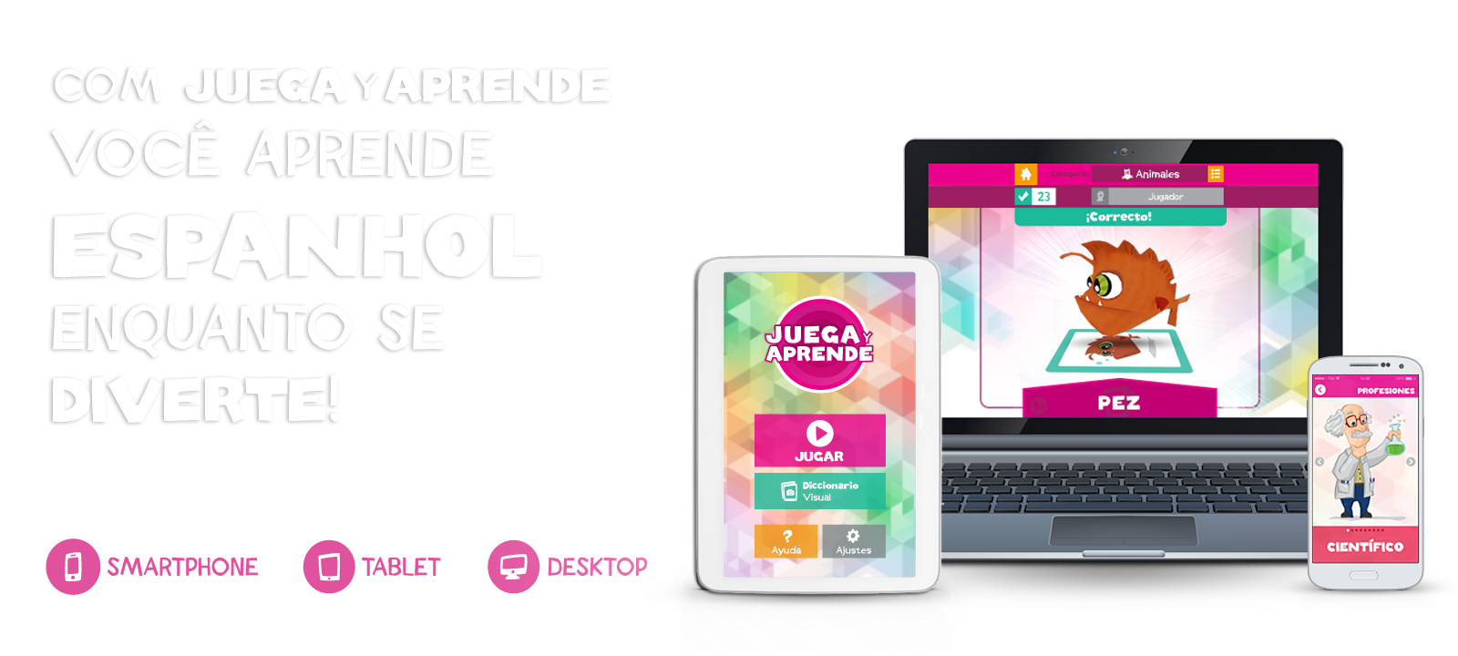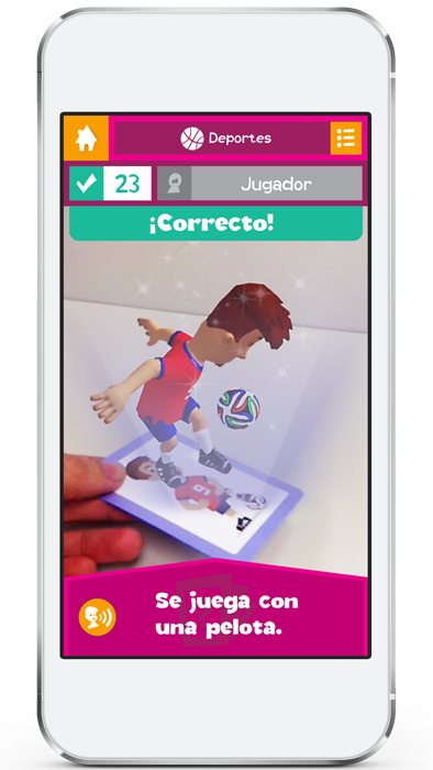 Juega y Aprende é um jogo em realidade aumentada voltado para o ensino da língua espanhola que integra o desafio linguístico lançado pelo aplicativo à solução a ser dada com as cartas impressas que acompanham o jogo. Para responder ao desafio que aparece na tela, o jogador deverá apontar a carta correspondente para a câmera de seu dispositivo, que indicará, por meio de uma animação em realidade aumentada, se ele acertou ou errou a questão. Seu desempenho vai depender tanto da quantidade de acertos quanto do tempo necessário para resolver cada frase.